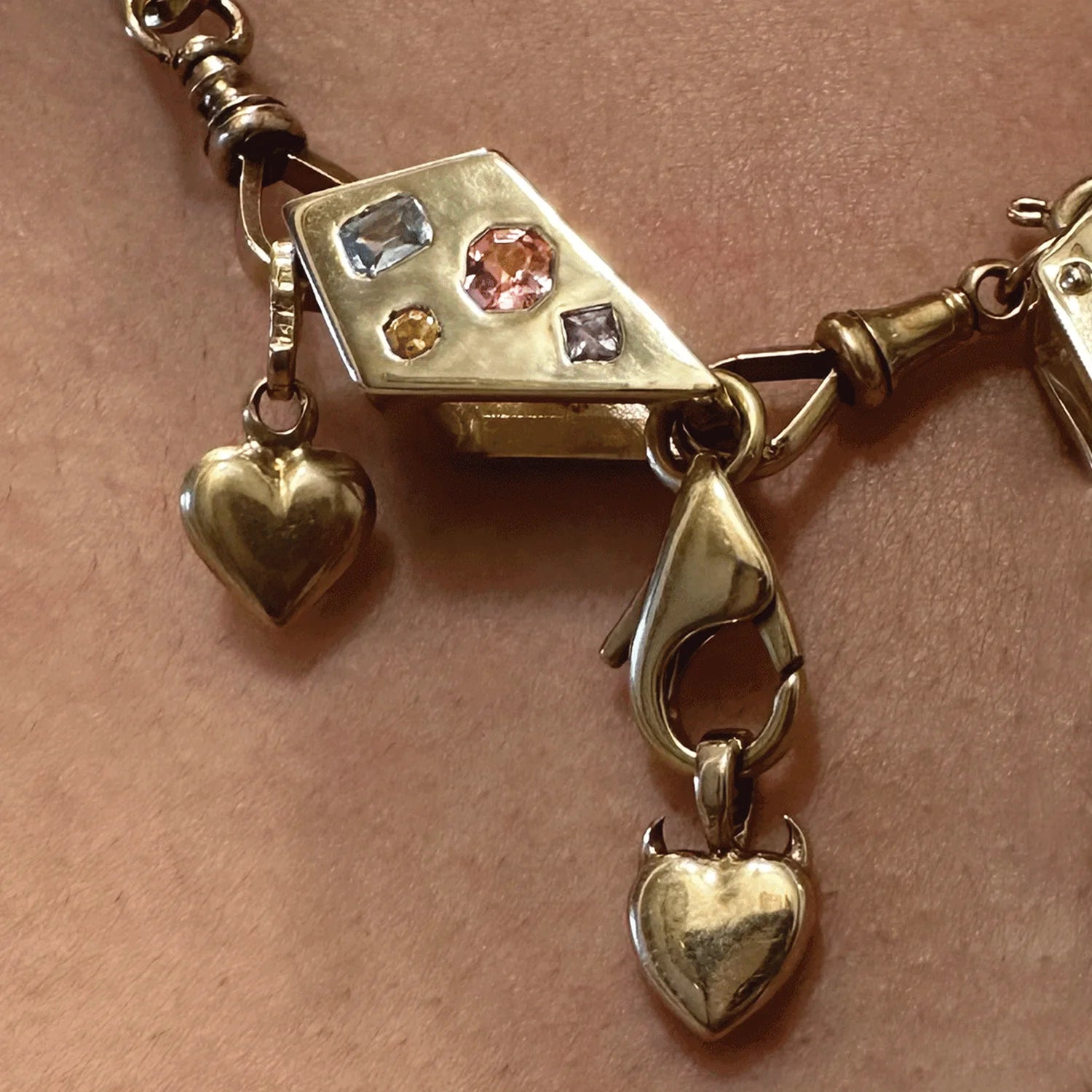 For the jewelry stack engineers and creatives. Inspired by NYC and its constant state of evolution and our jewelry stacking roots, The Crane Block Stacking Enhancers are designed to function as a piece to further extend and style your jewelry collection. Unlike basic drop clasp charms, this pendant features a chunky silhouette and multiple compartments to stack and style as you please, use it as a decorative chain extender, hook charms and pendants from its vintage clasp, and more.