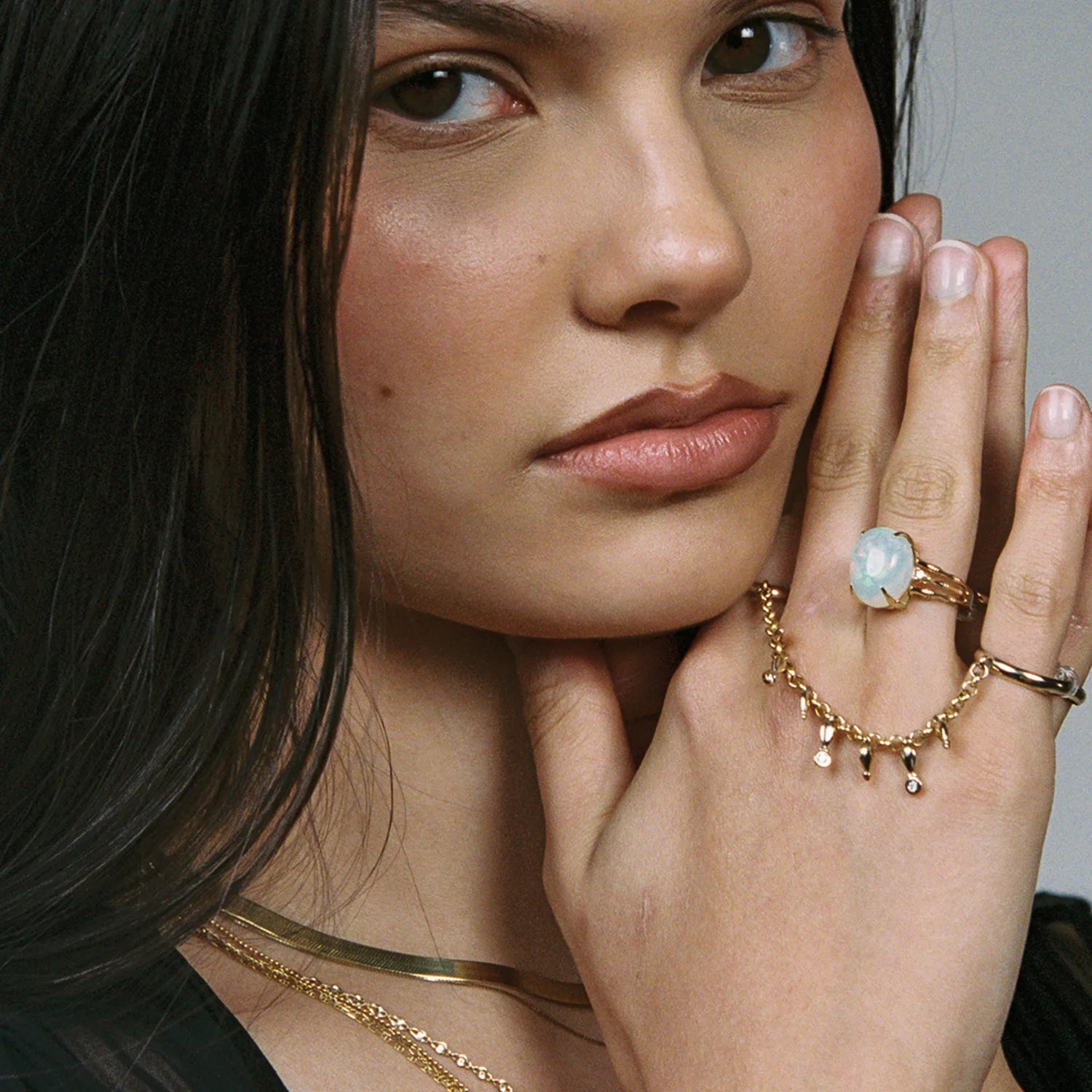A hand piece ring silhouette with a mix of bezel-set diamond tassels that dances with every movement. Like a tambourine decorating your hand, you’ll feel magical when you’re wearing it.
