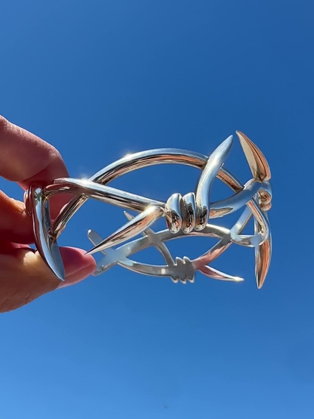 Inspired by an icon. Barbwire tattoo arm band cuff in sterling silver.