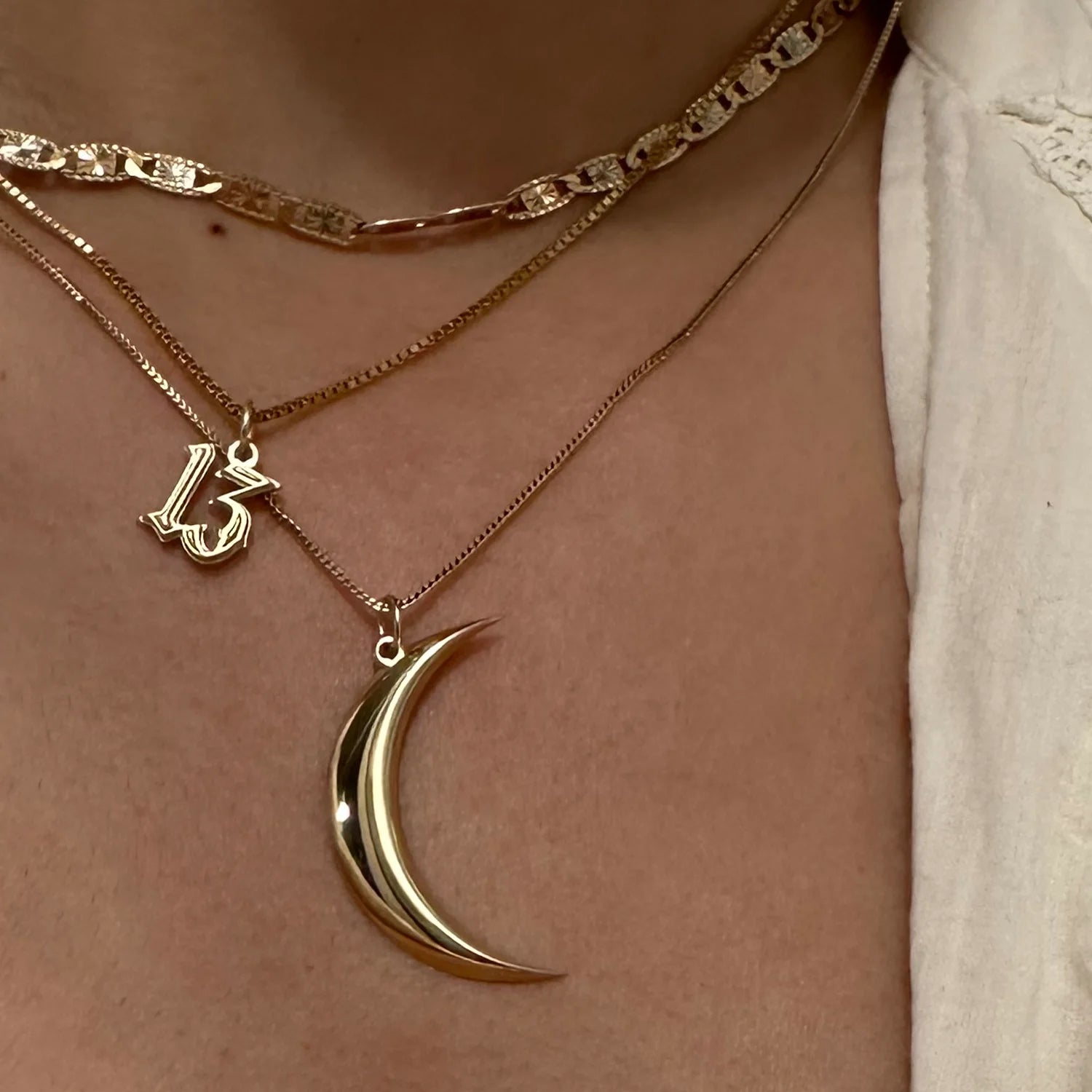 We recommend pairing the Perfect Moon Pendant with the Gothic Lucky 13 Charm pendant. Sold without chain, or add a silver or gold chain